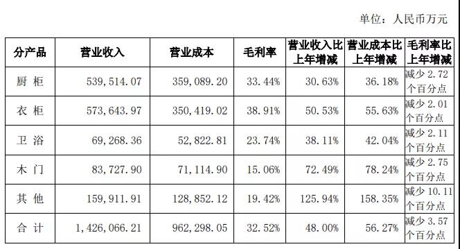 C.大宗业务渠道:报告期内,公司大宗业务渠道收入(含衣柜、橱柜、木门及其他)达 11.54 亿元,同比上年增 长 58.21%。
